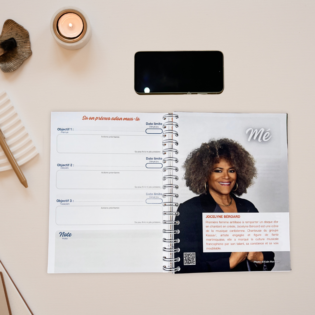 Notre agenda se distingue par sa volonté de diffuser la culture des Antilles-Guyane. Il se veut être un pont entre ces territoires en y mariant les différents créoles à travers des proverbes motivants mais également par sa thématique annuelle qui lie ces 3 territoires et au-delà. En 2026, l’agenda met en avant les femmes Antillo-guyanaises qui ont marqué ou marquent encore leur époque et ces territoires.